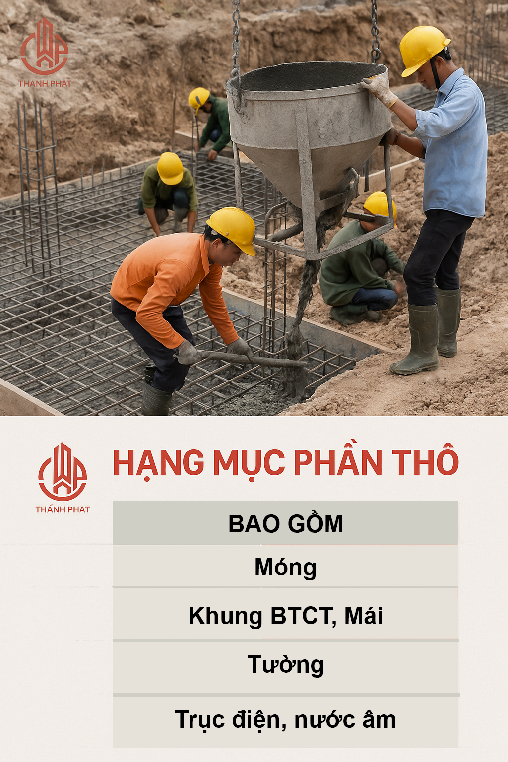 Khi lựa chọn gói xây dựng phần thô, chủ đầu tư cần nắm rõ các hạng mục nằm trong phạm vi thi công để dễ dàng so sánh, đánh giá và kiểm soát ngân sách. Dưới đây là các công việc thường được bao gồm và không bao gồm trong gói xây dựng phần thô tiêu chuẩn: