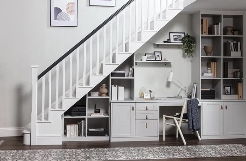 Mẫu số 6: Tủ gầm cầu thang tích hợp thêm bàn làm việc tiện lợi, dành riêng cho những căn nhà có diện tích nhỏ.