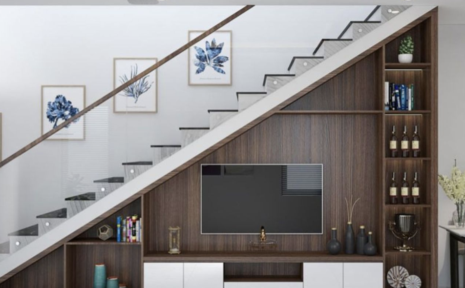 Tủ gầm cầu thang kết hợp kệ tivi hiện đại