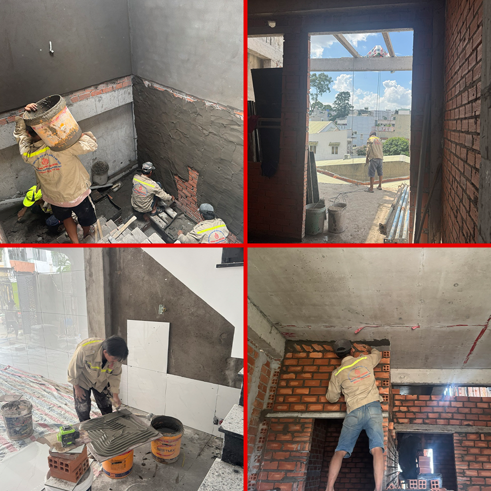• Xây tô tường gạch 100 và 200, vách ngăn phòng
