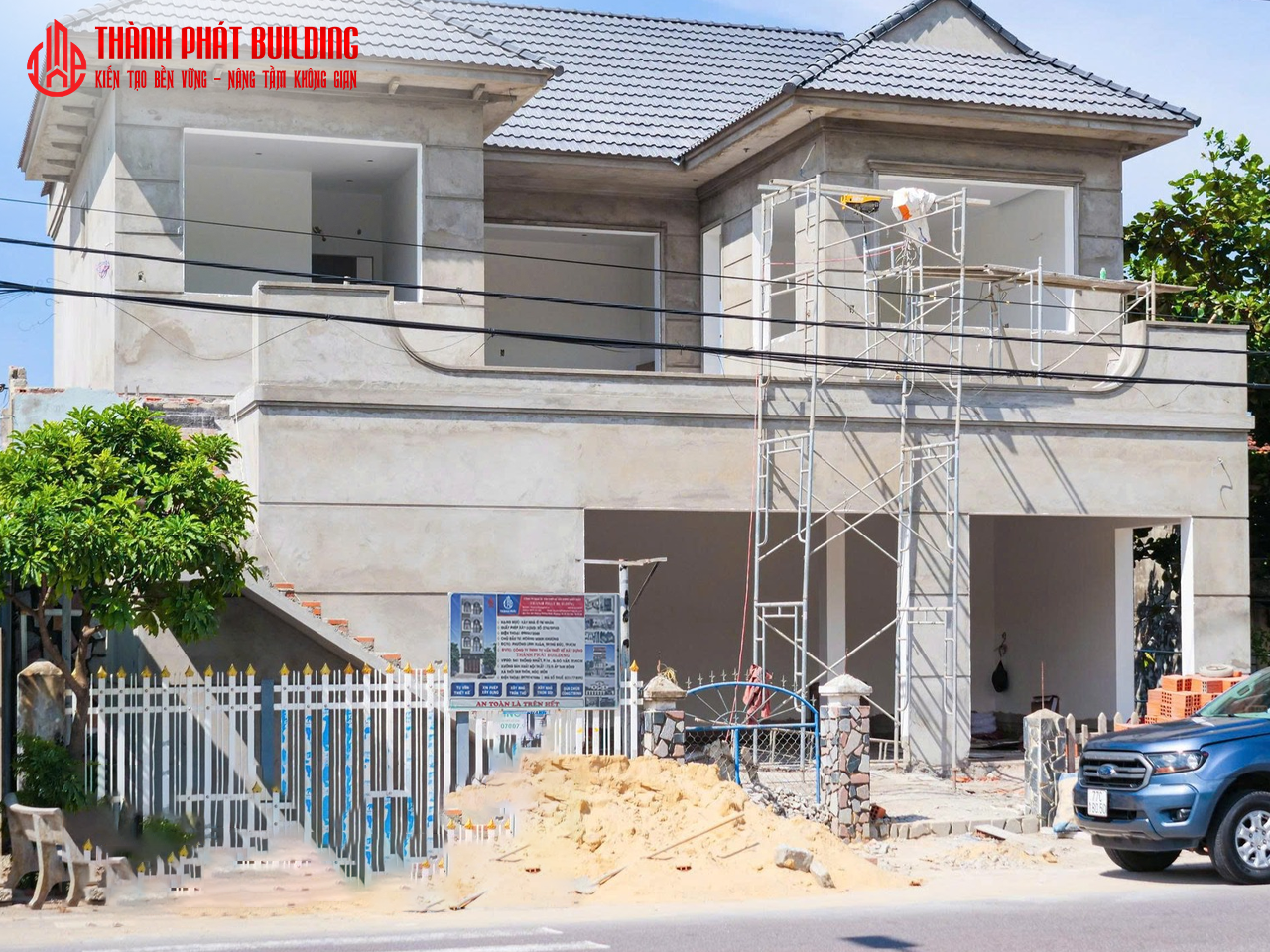 Kiến Trúc Thành Phát tự hào là đơn vị thi công xây dựng biệt thự 2 tầng cho gia đình chị Ngân. Căn biệt thự mới mặt tiền rộng rãi, thoáng mát bao gồm đầy đủ công năng sử dụng cho gia đình. Sau khi nắm bắt được mong muốn của gia đình chị Ngân, Thành Phát đã lên ý tưởng, thiết kế kiến trúc, công năng cho ngôi nhà một cách rõ ràng chi tiết. Dưới đây là quá trình thi công công trình nhà chị Ngân Bình Thuận.