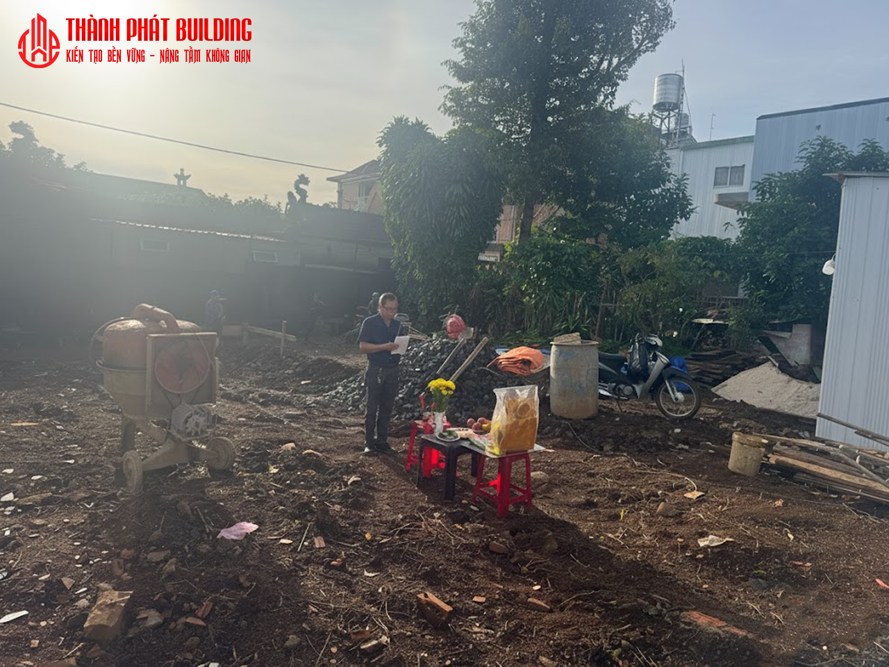 Chọn được ngày lành tháng tốt, Kiến Trúc Thành Phát chính thức quá trình khởi công xây dựng công trình nhà phố 1 trệt 1 lửng. Chúc cho dự án được nhiều thuận lợi và may mắn cho gia đình chú.