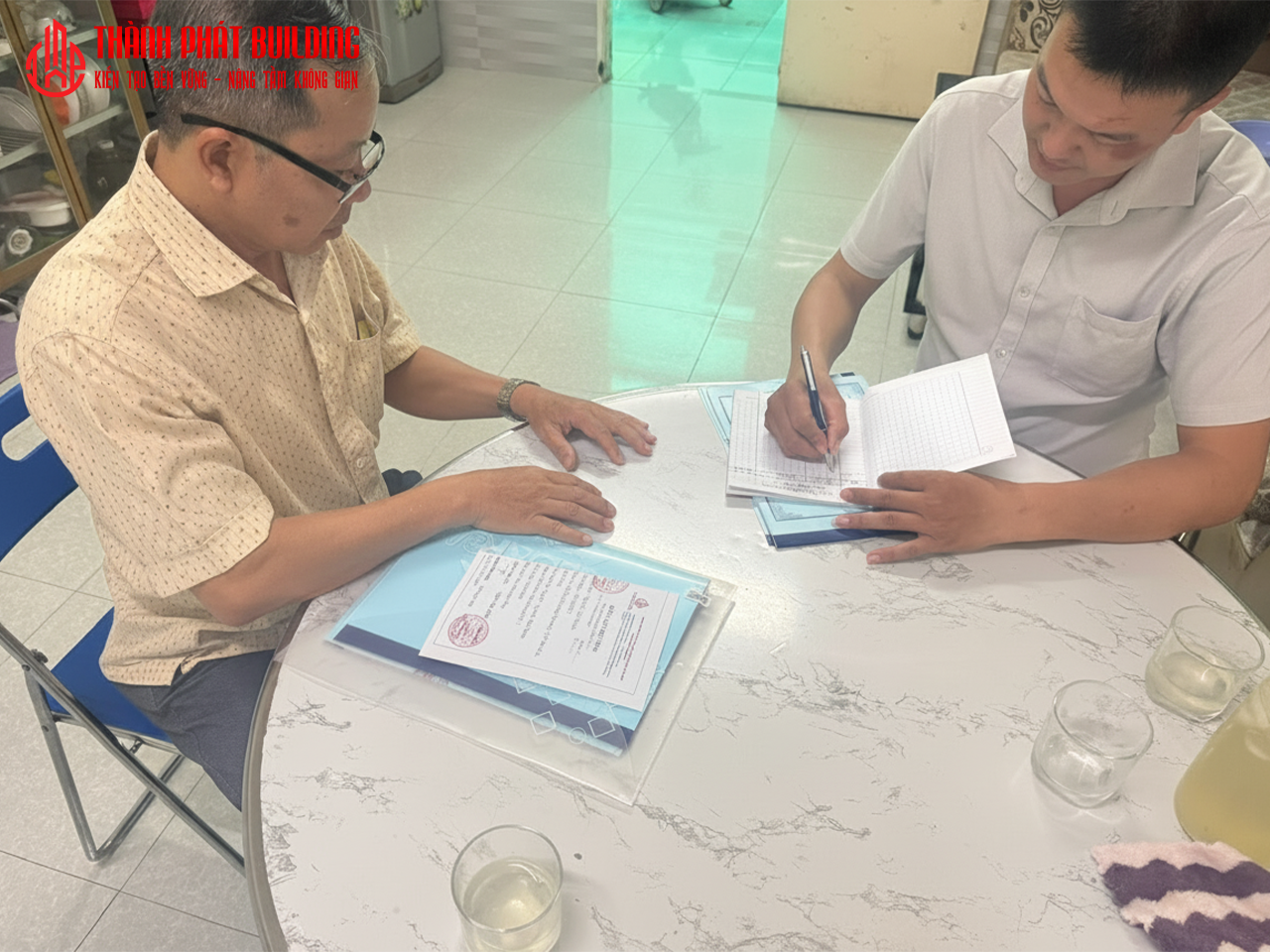 Ký hợp đồng xây dựng nhà phố 1 trệt 1 lửng nhà chú Thuận