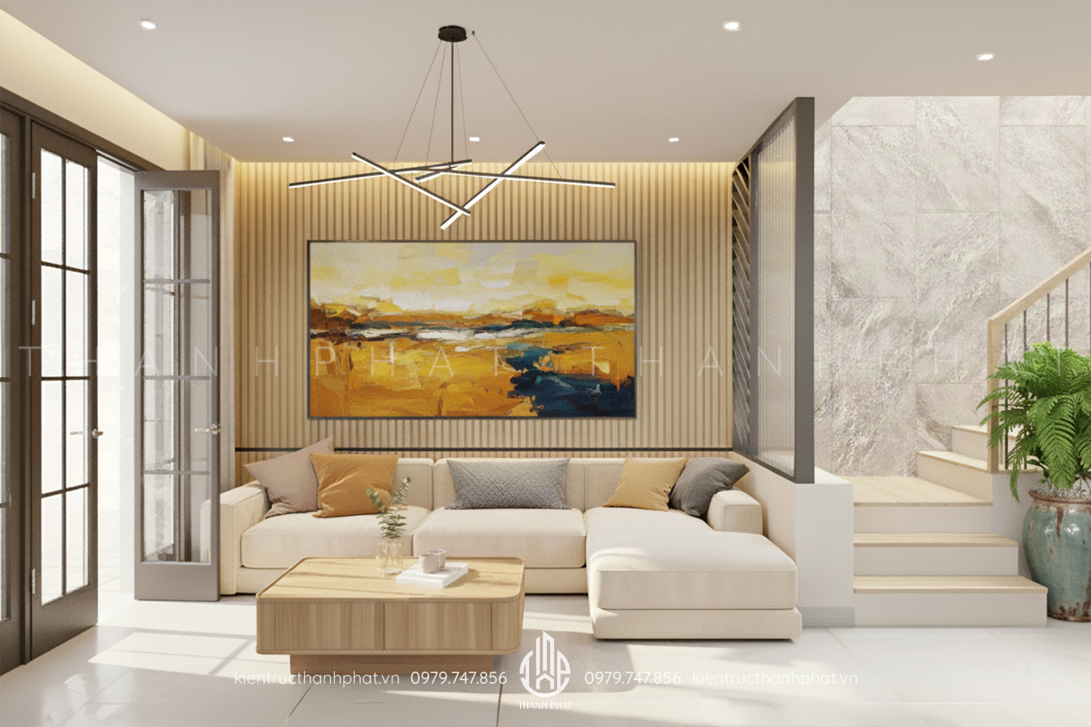 Phòng khách thông thoáng với thiết kế mở đón gió và ánh sáng
