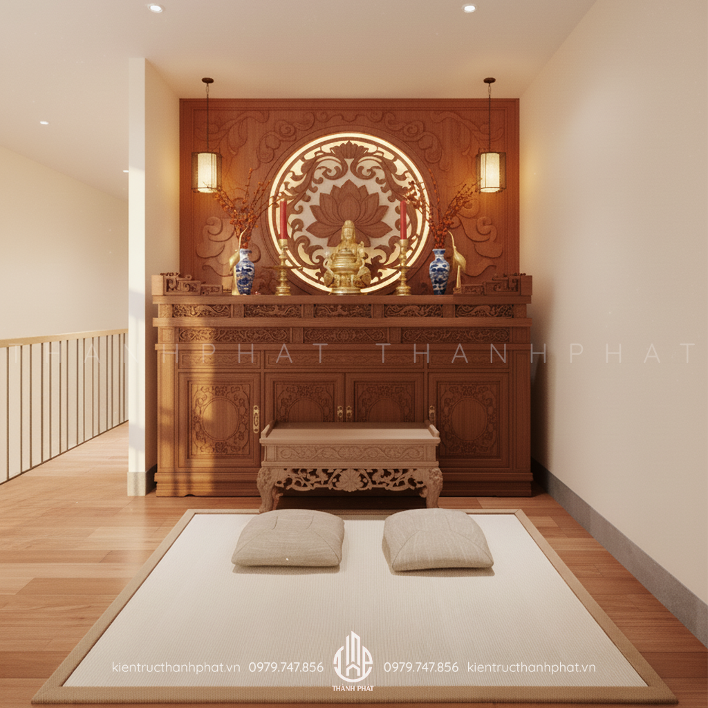 Phòng thờ với nội thất gỗ tạo thêm nét ấm cúng, trang nghiêm
