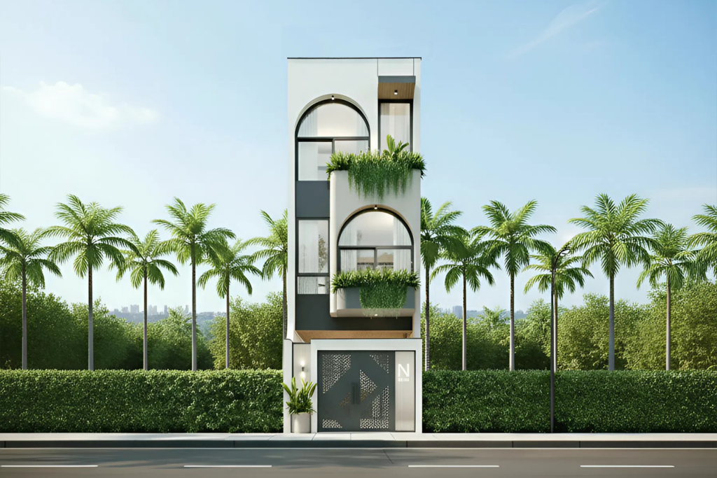 Mặt tiền nhà phố hiện đại kết nối thiên nhiên xanh mát