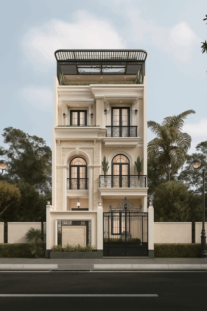 Mẫu nhà phố tân cổ điển 4 tầng tại Thủ Đức không chỉ là không gian sống lý tưởng cho gia đình nhiều thế hệ mà còn là sự khẳng định gu thẩm mỹ và cá tính của gia chủ. Với thiết kế tối ưu, mỗi tầng đều có thể bố trí linh hoạt phòng khách, bếp, phòng ngủ, phòng làm việc hoặc phòng thờ, đáp ứng đầy đủ nhu cầu sinh hoạt và nghỉ ngơi của mọi thành viên.