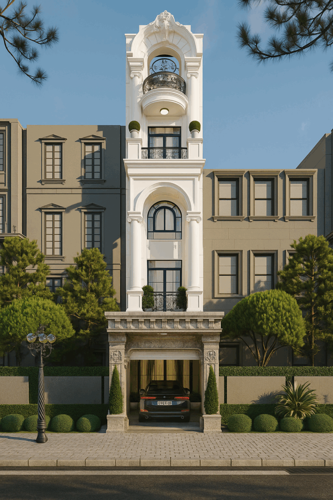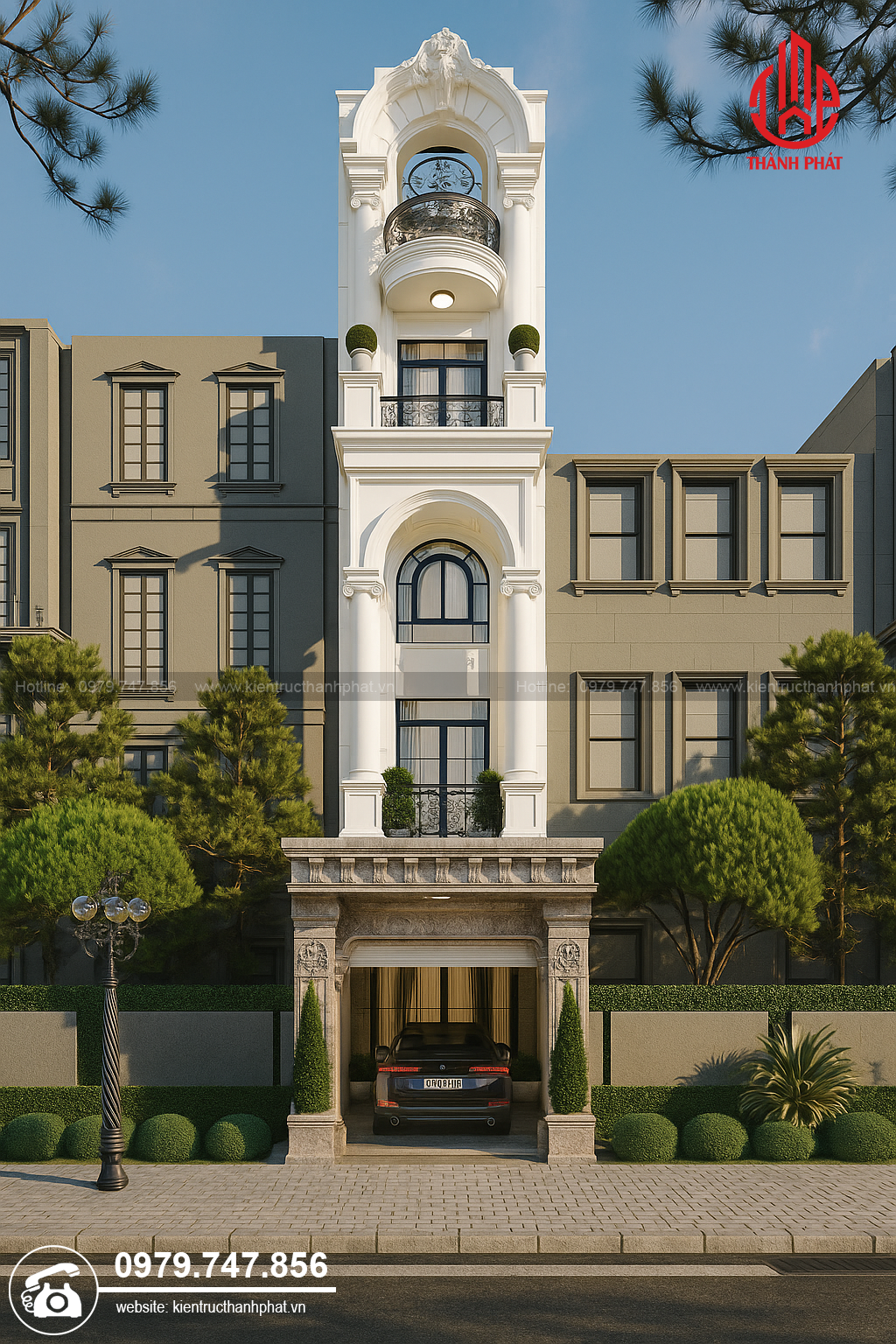 Giữa những khu phố đông đúc với mật độ xây dựng cao, việc lựa chọn phong cách tân cổ điển cho thiết kế nhà ống không chỉ là tuyên ngôn về thẩm mỹ mà còn là giải pháp khéo léo để nâng tầm giá trị công trình. Mẫu thiết kế nhà phố do Kiến trúc Thành Phát triển khai tại khu đô thị trung tâm TP.HCM là một minh chứng điển hình cho sự hòa quyện giữa kiến trúc cổ điển châu Âu và kỹ thuật thi công hiện đại, mang đến một không gian sống vừa sang trọng, vừa tối ưu công năng.