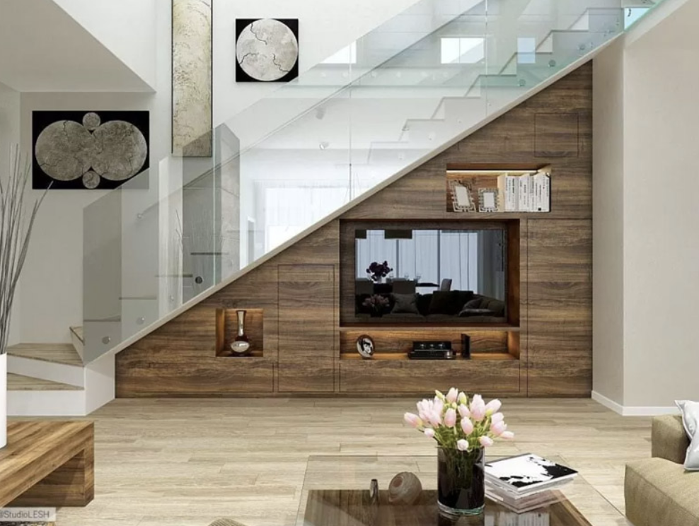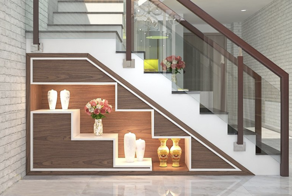 Phần gầm cầu thang thường bị bỏ quên do người dùng không chú ý đến. Do đó việc tận dụng tối đa phần không gian này để thi công tủ gầm cầu thang là một ý tưởng tuyệt vời để cất giữ, trưng bày những vật dụng cần thiết.