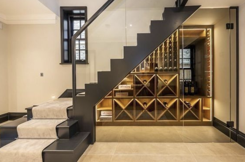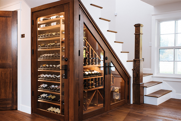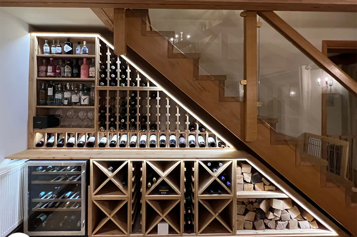 Tủ rượu gầm cầu thang tạo không gian lưu trữ, bảo quản rượu tốt hơn