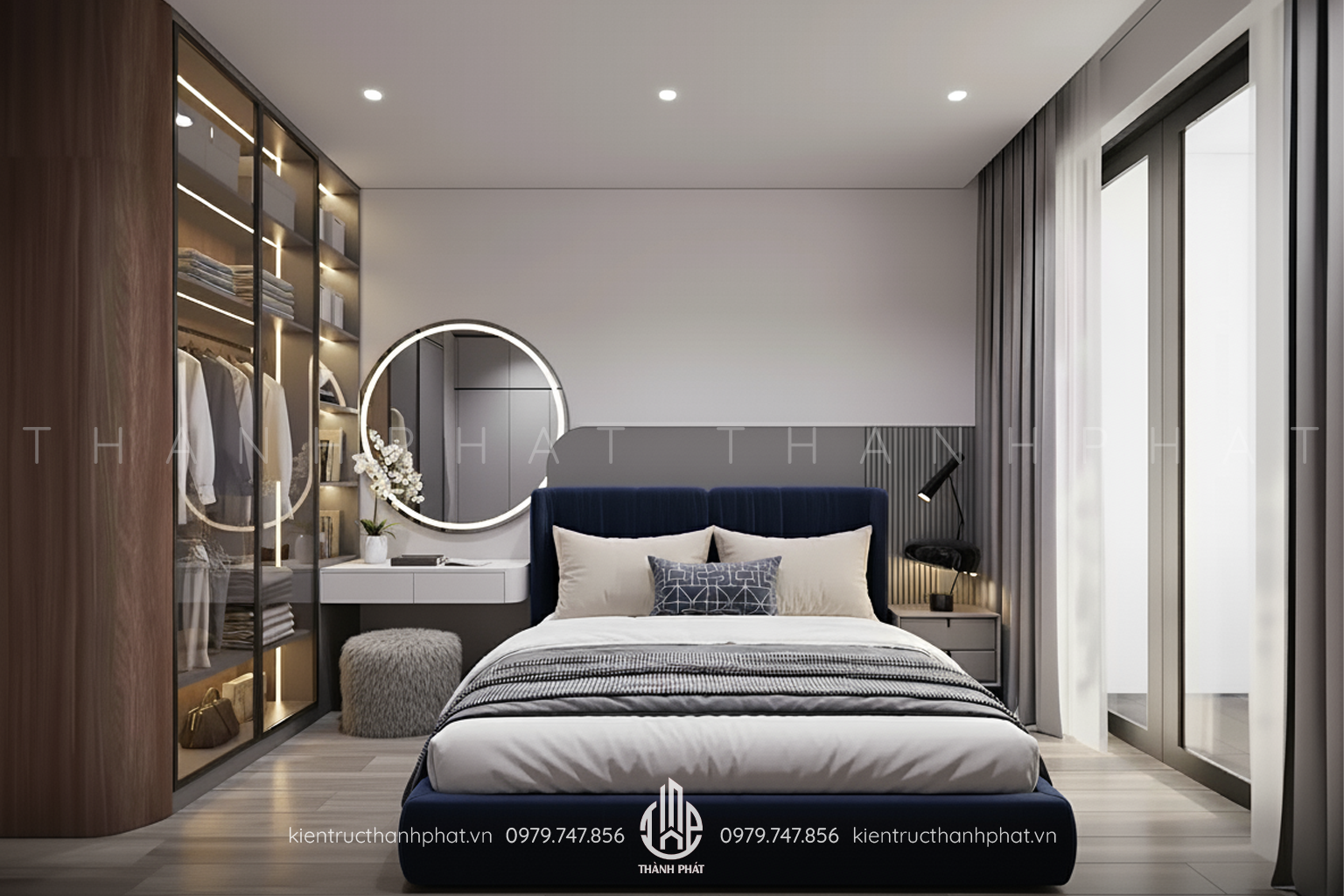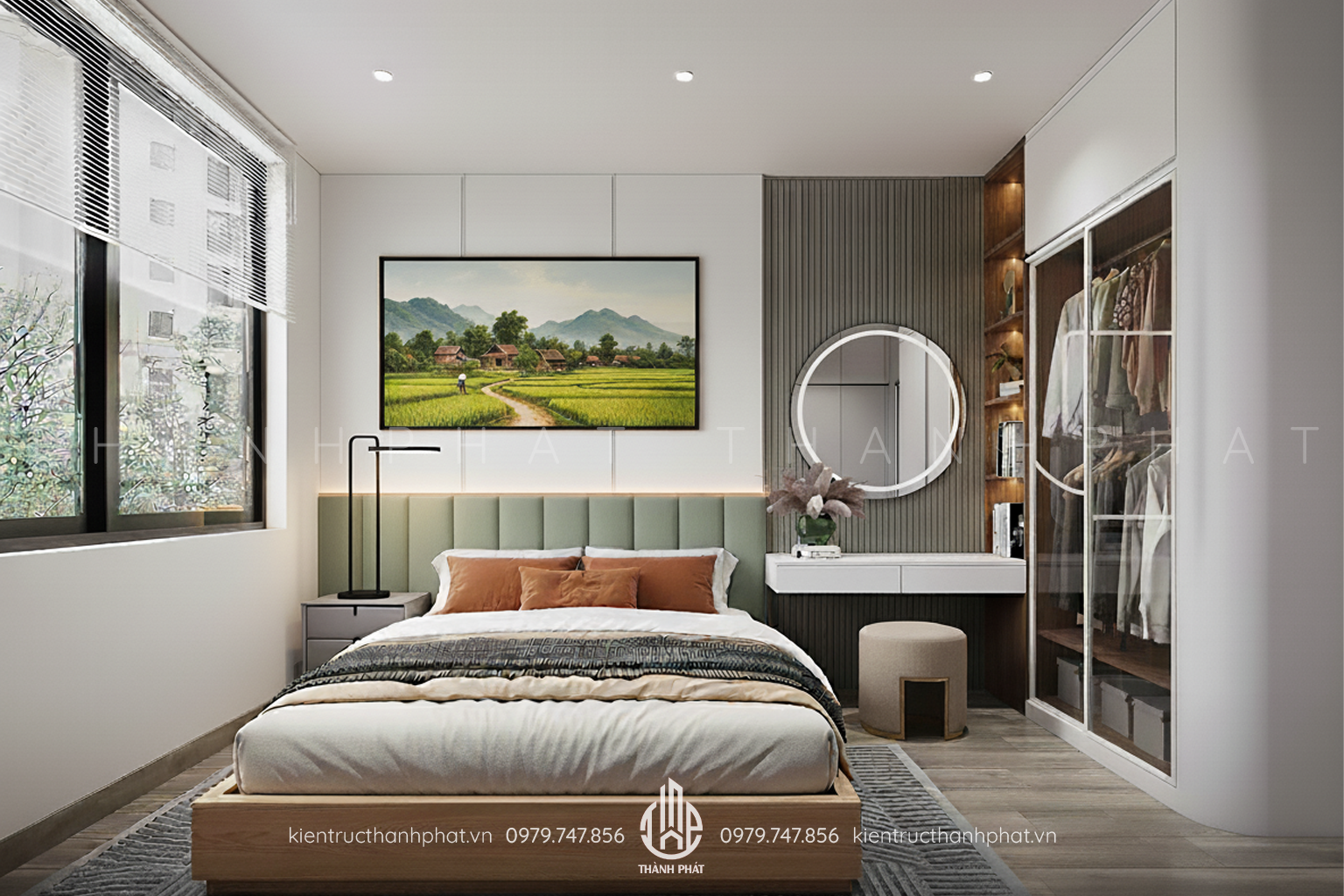 Mỗi phòng ngủ được chăm chút để trở thành nơi trú ẩn an yên sau một ngày dài. Gam màu trung tính chủ đạo kết hợp với ánh sáng tự nhiên chan hòa qua các ô cửa lớn giúp không gian trở nên nhẹ nhàng và thư giãn. Giường ngủ, tủ áo và bàn trang điểm đều được thiết kế tinh gọn, tối ưu công năng nhưng vẫn mang đến cảm giác ấm cúng, thanh lịch.