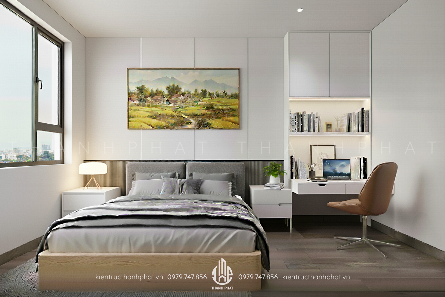 Không gian làm việc tại nhà được Kiến Trúc Thành Phát thiết kế với triết lý “tối giản để tập trung”. Bàn làm việc rộng rãi, kệ sách âm tường tinh tế và hệ thống đèn chiếu sáng được bố trí khoa học, giúp mang lại sự tỉnh táo và tập trung tối đa. Dù là một góc nhỏ, nhưng lại là nơi khơi nguồn sáng tạo, vun đắp những ý tưởng mới mỗi ngày.