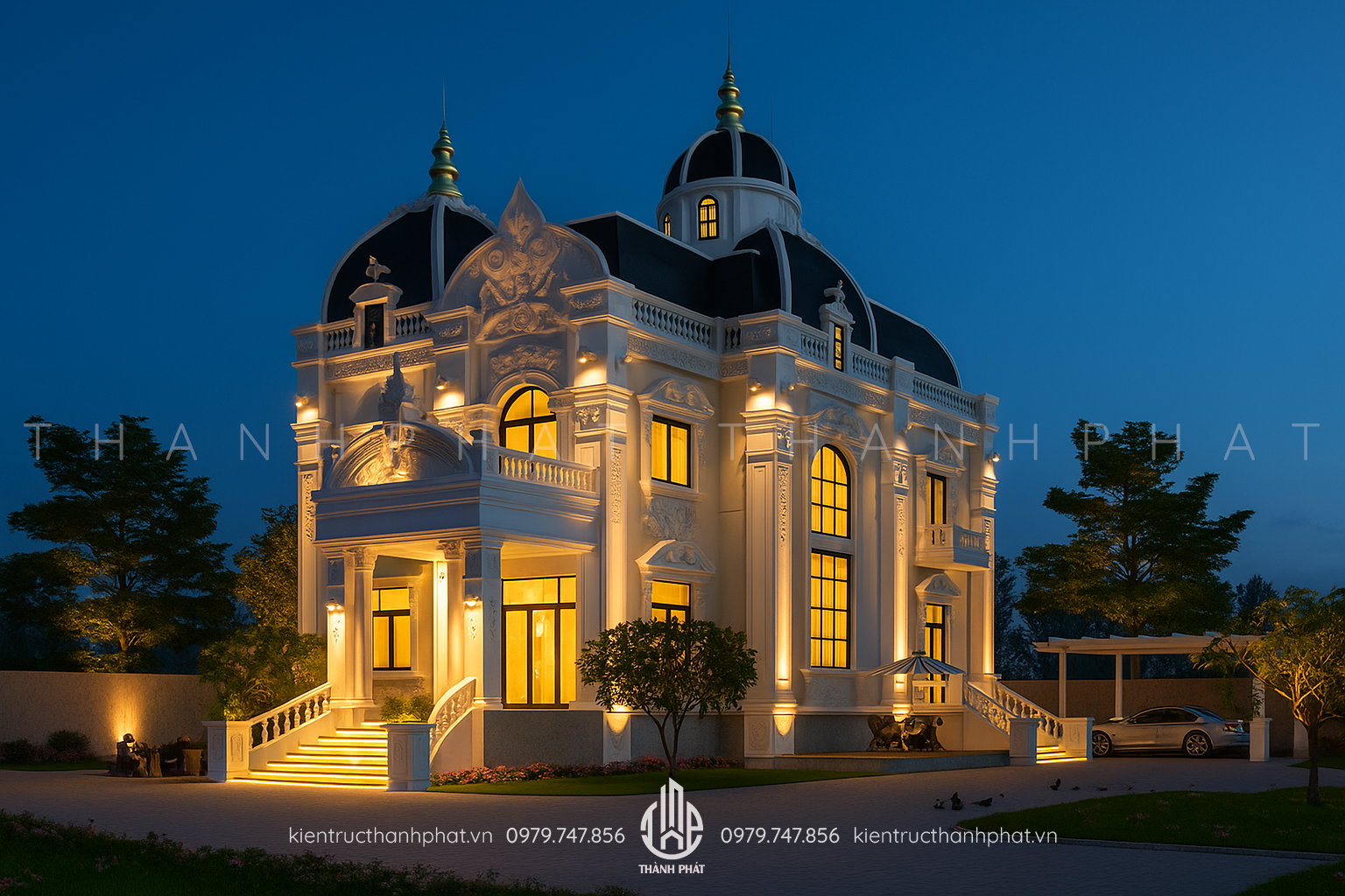 Mỗi không gian trong căn biệt thự đều được tính toán kỹ lưỡng để đảm bảo công năng sử dụng, đồng thời mang lại cảm giác thư giãn, thoải mái cho gia đình. Với thiết kế biệt thự 2 tầng tân cổ điển Pháp, các phòng chức năng đều được phân chia hợp lý, tạo nên một không gian sống tiện nghi nhưng cũng rất ấm cúng. Những chi tiết như hệ thống đèn chiếu sáng và các vật liệu cao cấp trong thiết kế nội thất mang đến vẻ đẹp trang nhã và đẳng cấp.
