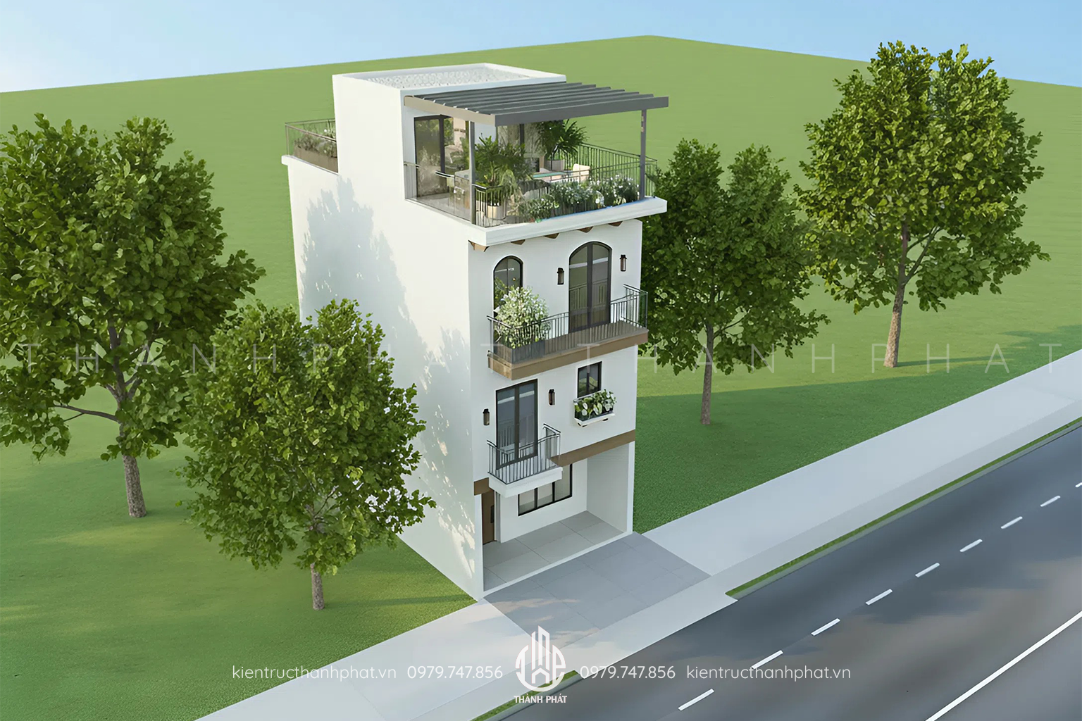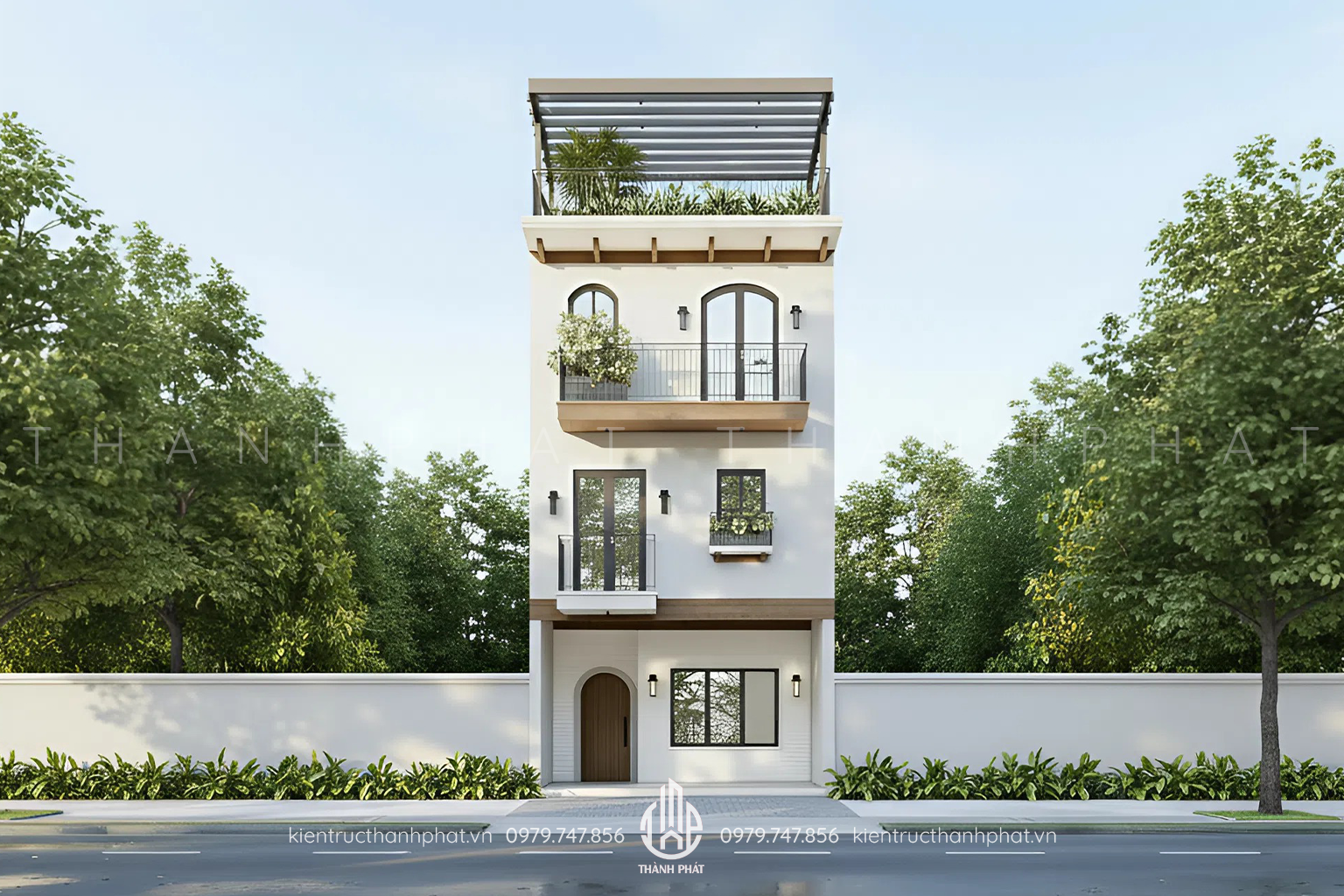 Mẫu nhà phố 3 tầng 1 tum phong cách Địa Trung Hải là giải pháp lý tưởng cho những gia đình sở hữu lô đất nhỏ nhưng mong muốn một không gian sống tiện nghi, hiện đại, thoáng mát và mang đậm dấu ấn cá nhân. Với kinh nghiệm lâu năm trong thiết kế thi công nhà phố, Kiến Trúc Thành Phát cam kết mang đến những công trình đẹp, bền vững và tối ưu chi phí cho khách hàng.