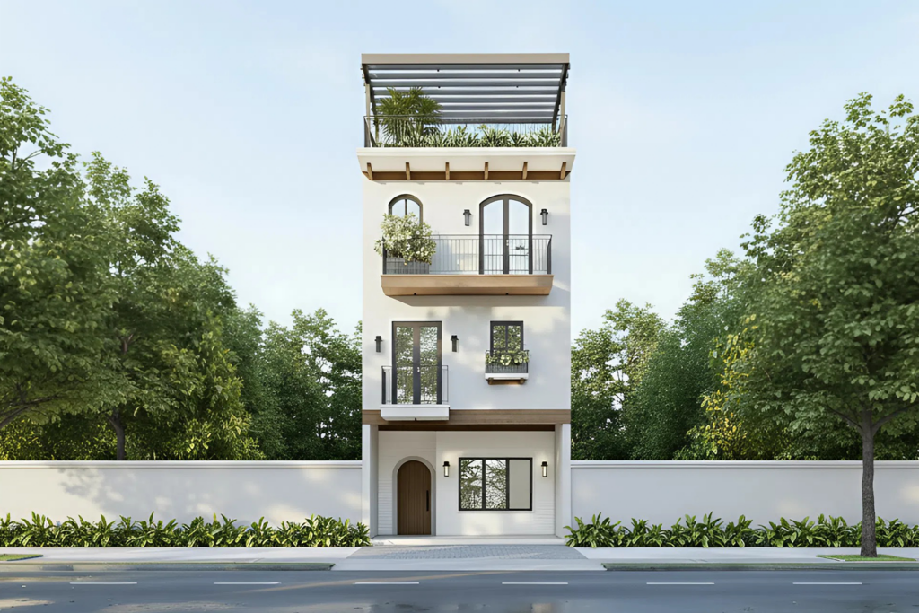 Trong bối cảnh quỹ đất tại các đô thị ngày càng thu hẹp, những mẫu nhà phố 3 tầng 1 tum kết hợp thẩm mỹ và công năng đang trở thành lựa chọn ưu tiên của nhiều gia đình. Đặc biệt, phong cách Địa Trung Hải hiện đại nổi bật nhờ vẻ đẹp thanh lịch, mềm mại và khả năng mang đến không gian sống thoáng đãng, gần gũi với thiên nhiên.