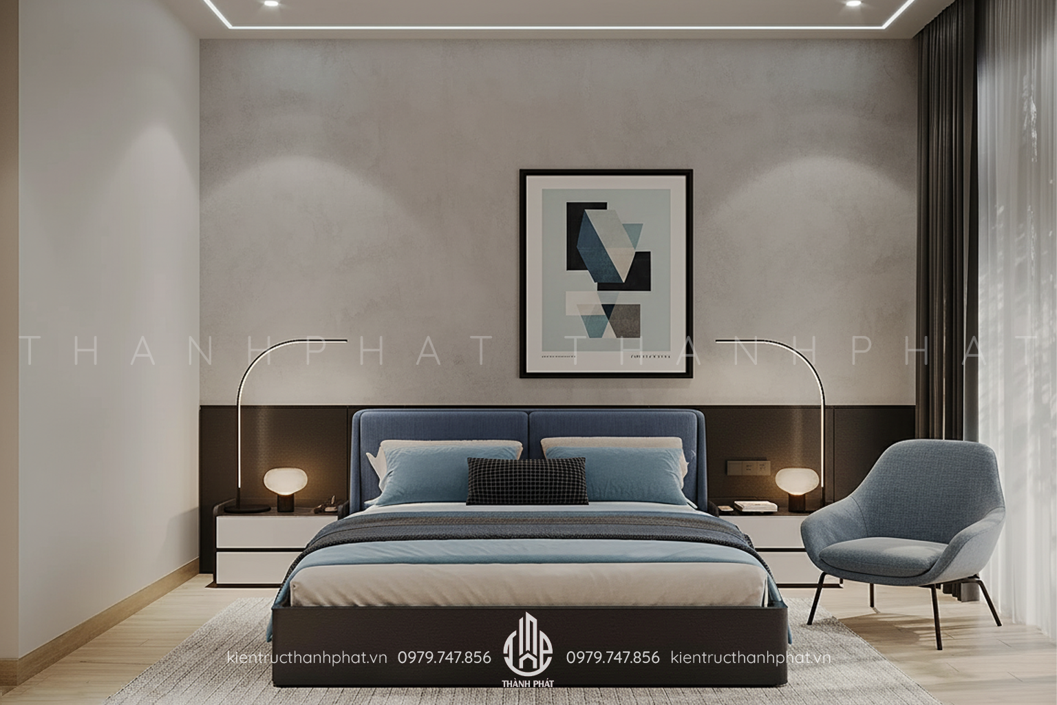 Phòng ngủ master rộng rãi với cách bố trí khoa học, tiện nghi