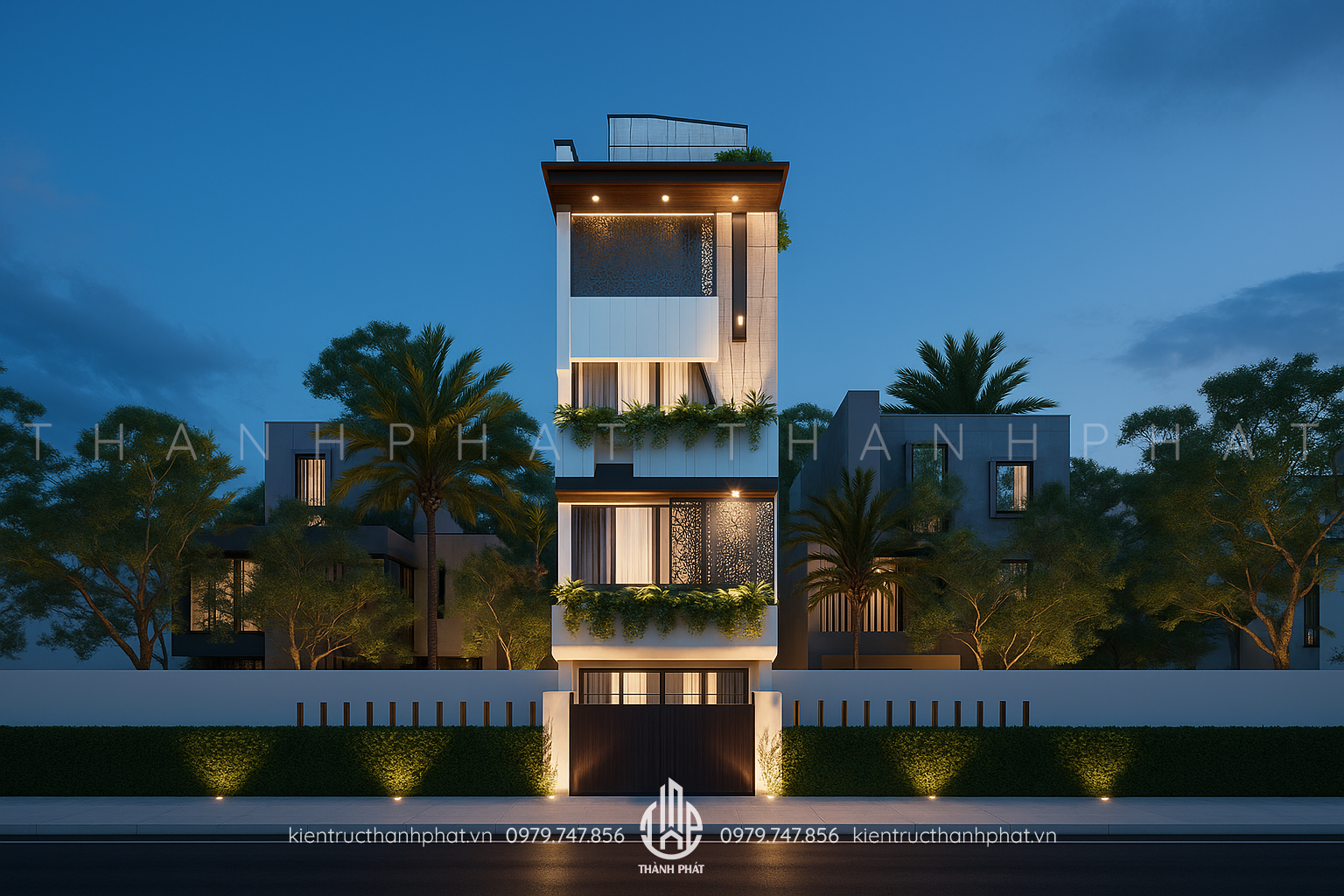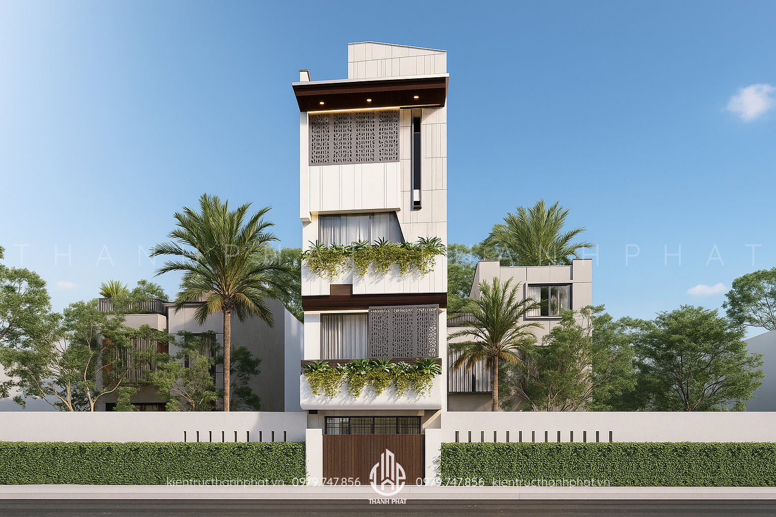 Thiết kế nhà phố 4 tầng với mặt tiền ấn tượng