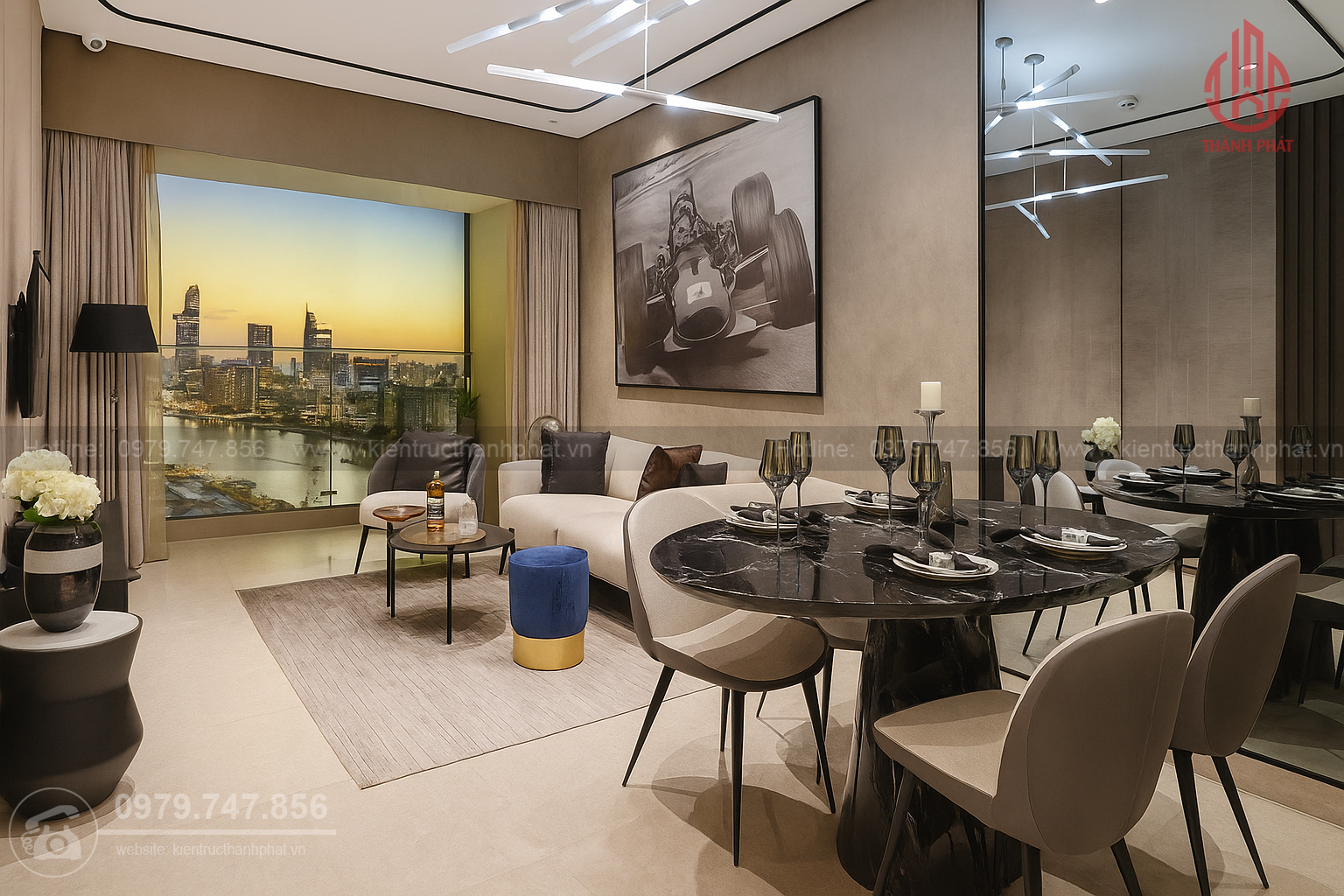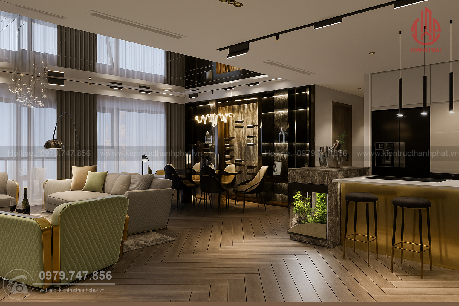 Kiến Trúc Thành Phát đã được biết tới là đơn vị cung cấp dịch vụ thiết kế và thi công nội thất uy tín. Đơn vị có nhiều năm kinh nghiệm trong việc hoàn thành các hạng mục nội thất cho các công trình đẳng cấp, đặc biệt là dự án The River Thủ Thiêm Quận 2.