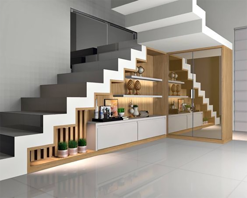 Việc biến một không gian “chết” thành nơi chứa đựng các loại kệ tủ khác nhau sẽ giúp không gian nhà bạn được tối ưu hoá hơn. Điều này được đánh giá cao hơn so với việc sử dụng khoảng không gian bình thường làm nơi đặt các loại kệ tủ.