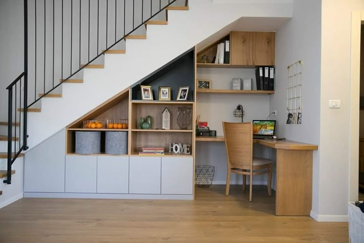 Hãy xem xét nhu cầu sử dụng của bạn cũng như các thành viên khác trong gia đình để đưa ra quyết định bố trí tủ gầm cầu thang khác nhau. Cụ thể bạn có thể lựa chọn tủ gầm cầu thang tích hợp bàn làm việc, kệ sách, kệ trang trí,…