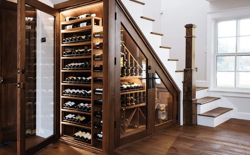 Tủ gầm cầu thang trang bị kệ đựng rượu sang trọng
